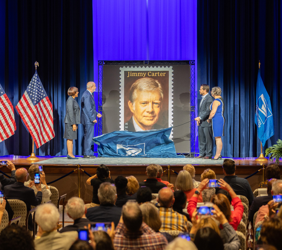 The Postal Service dedicated its stamp honoring Jimmy Carter on Oct. 1, where the 39th president was hailed for his lifetime of extraordinary service.