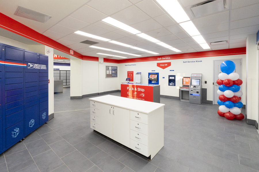 Other features include rapid dropoff stations that allow customers to drop off packages within seconds, self-service kiosks and USPS Smart Lockers that enable customers to retrieve packages at any time of the day or night.
