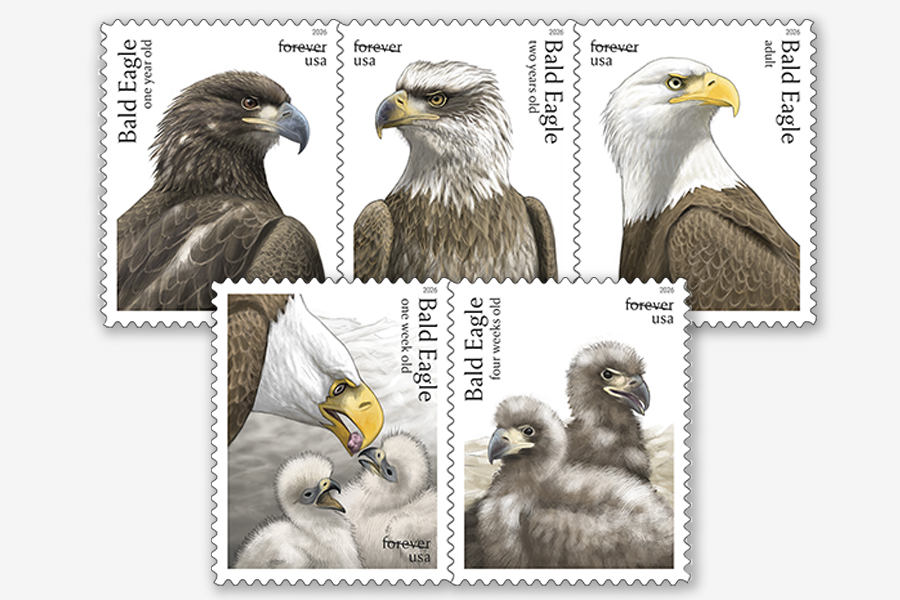 • Bald Eagle: Hatchling to Adult, five stamps that will follow the symbolic raptor’s journey from babyhood to adulthood;