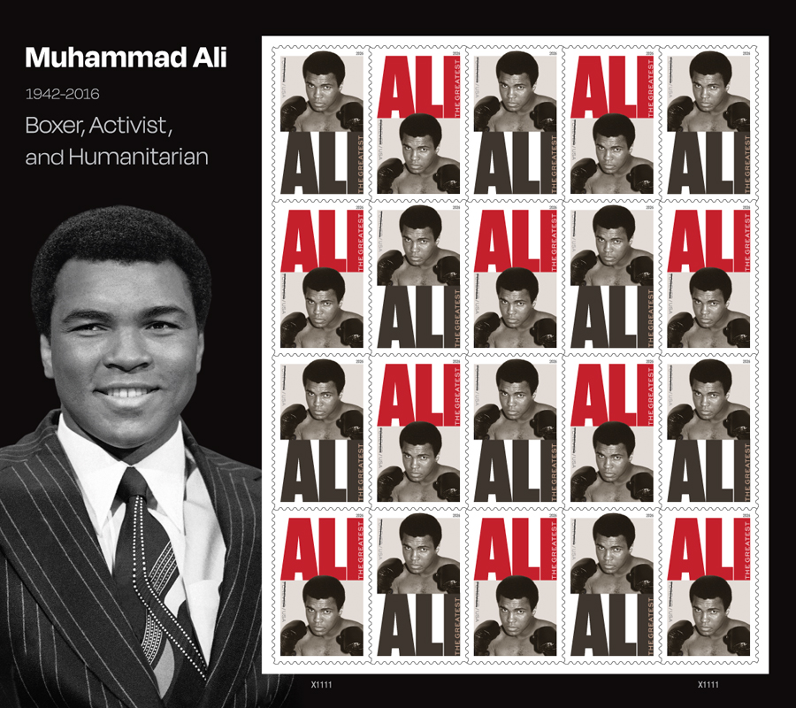 • Muhammad Ali, a stamp with the image of a 1974 Associated Press photo of the world-famous boxer, activist and humanitarian (1942-2016) in a pugilistic pose;