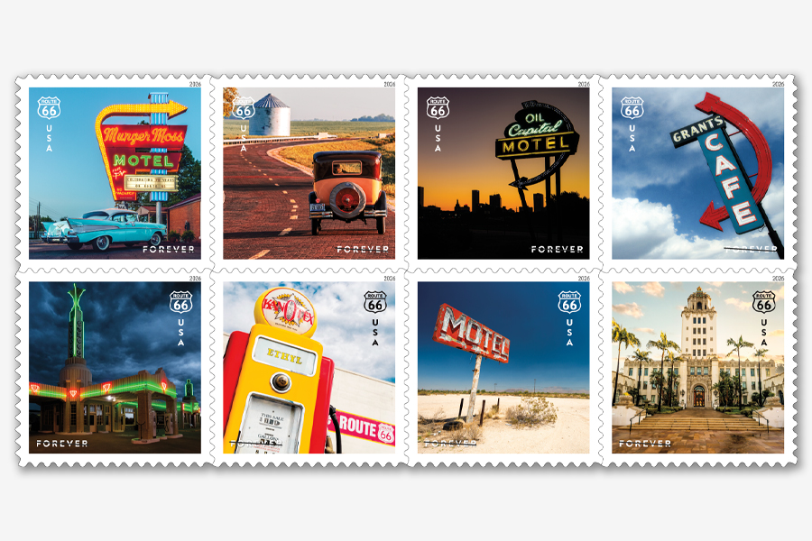 • Route 66, a pane of 16 stamps with eight images that will celebrate the legendary highway on its 100th anniversary;
